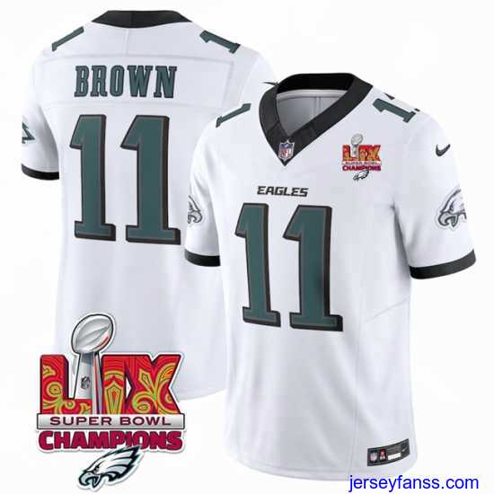 Gorgeous Philadelphia Eagles 11 A J Brown White 2025 Eagles Logo Super Bowl LIX Patch New F.U.S.E Vapor Untouchable Limited Stitched Football Jersey